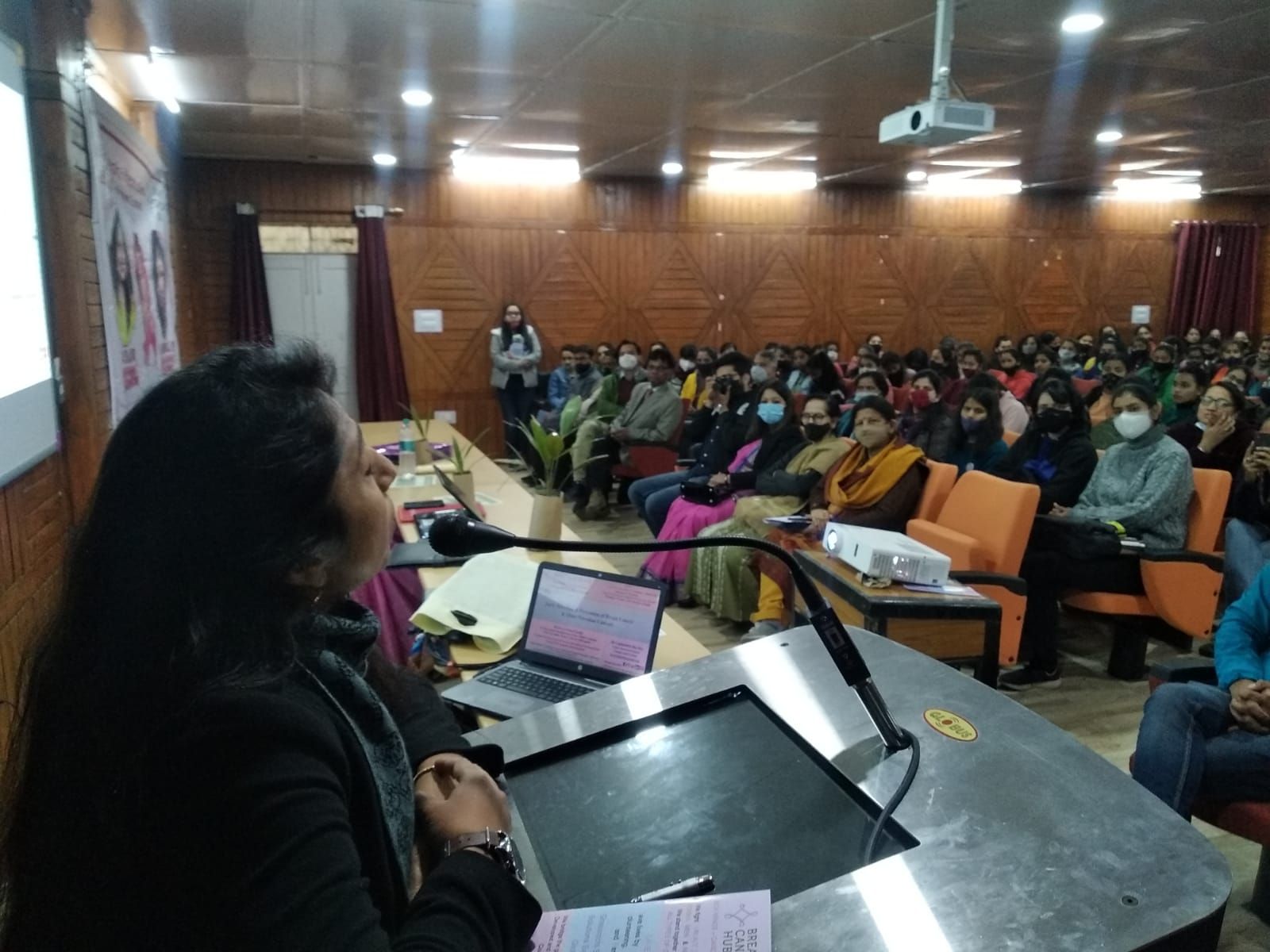 नैनीताल की आशा फाउंडेशन की ओर से इनदिनों ब्रेस्ट कैंसर को लेकर पिंक मुहिम चलाई जा रही है। आशा फाउंडेशन की ओर से पिछले कई सालों से पिंक अभियान के तहत कैंसर के खिलाफ जंग जारी है। इसी कड़ी में आज नैनीताल के डीएसबी कैम्पस और नैनीताल क्लब के शैले हॉल में ब्रेस्ट कैंसर अवेयरनेस कार्यक्रम का आयोजन किया गया। आशा फाउंडेशन और अमेरिका की ब्रेस्ट कैंसर हब के तत्वावधान में हुए कार्यक्रम में अमेरिका से आई डॉक्टर लोपामुद्रा दास राय ने न सिर्फ ब्रेस्ट कैंसर बल्कि शरीर के विभिन्न अंगों में होने वाले कैंसर के बारे में महत्वपूर्ण जानकारी दी और बताया कि ब्रेस्ट कैंसर सिर्फ महिलाओं में ही नही बल्कि पुरुषों में भी देखा गया है। कैंसर छुपाने की बीमारी नही है बल्कि इस पर खुल कर बात करने की शुरुआत करनी होगी। कैंसर छुआछूत की बीमारी नही है इसीलिए कैंसर के मरीजो से प्यार से पेश आये,उन्हें अकेला बिल्कुल भी न छोड़े। उन्होंने एक कैंसर मरीज को याद करते हुए बताया कि अमेरिका में एक कैंसर मरीज महिला ने अपने पूरी तरह ठीक होने का श्रेय अपने बच्चों को दिया क्योंकि महिला के बच्चे हर रोज ( यू आर स्ट्रांग) प्रिंटेड टी शर्ट पहनकर अपनी कैंसर पीड़ित मां को मोटिवेट करते थे,उन बच्चों को देखकर महिला के मन मे सकारात्मक विचार आने शुरू हुए और इसका असर ये हुआ कि दवाइयों ने भी अपना काम दोगुनी रफ़्तार से किया,इसीलिए हर बीमारी में प्यार और केयर बेहद ज़रूरी है।